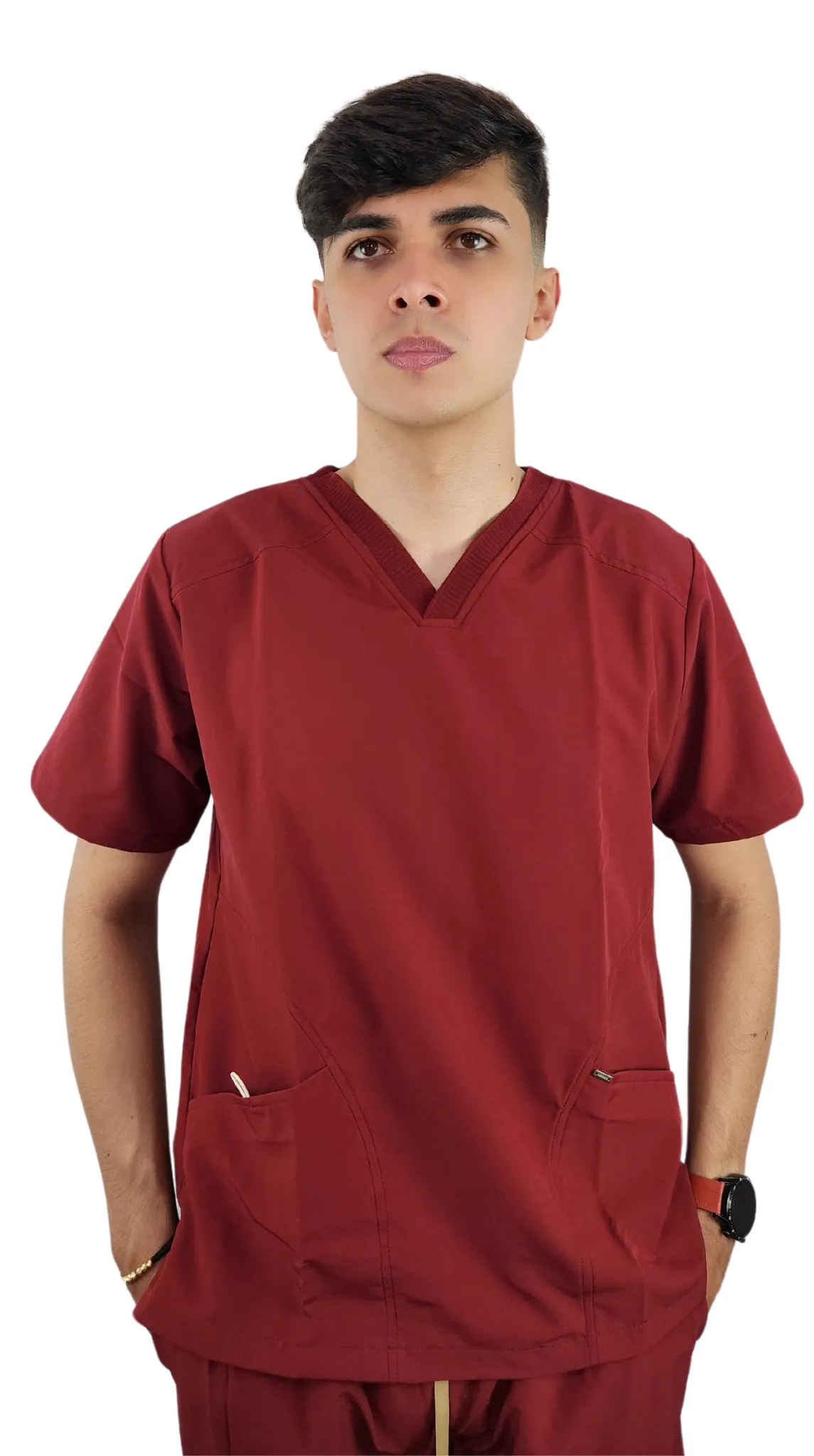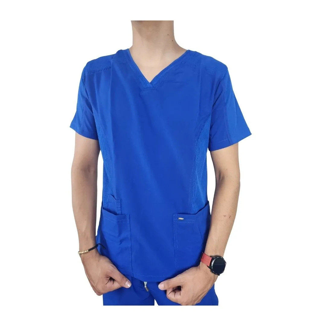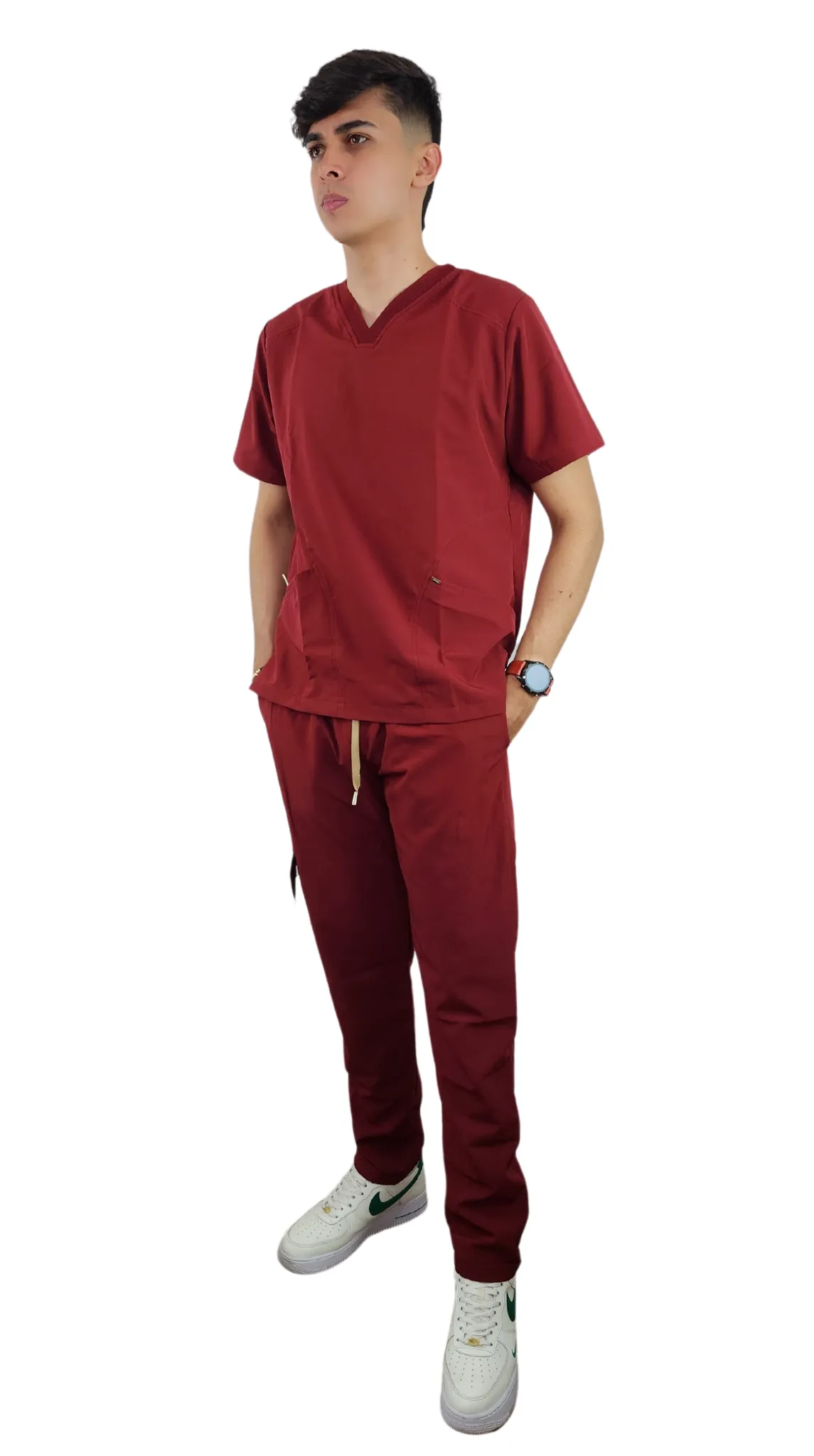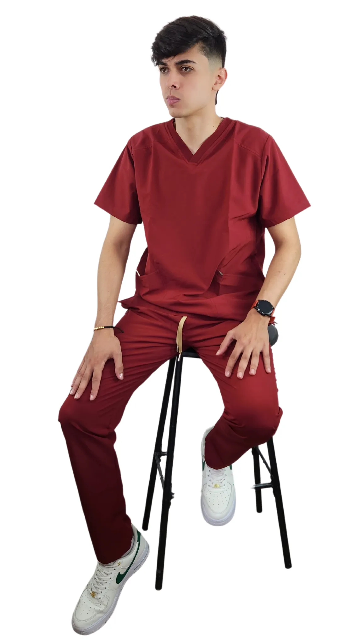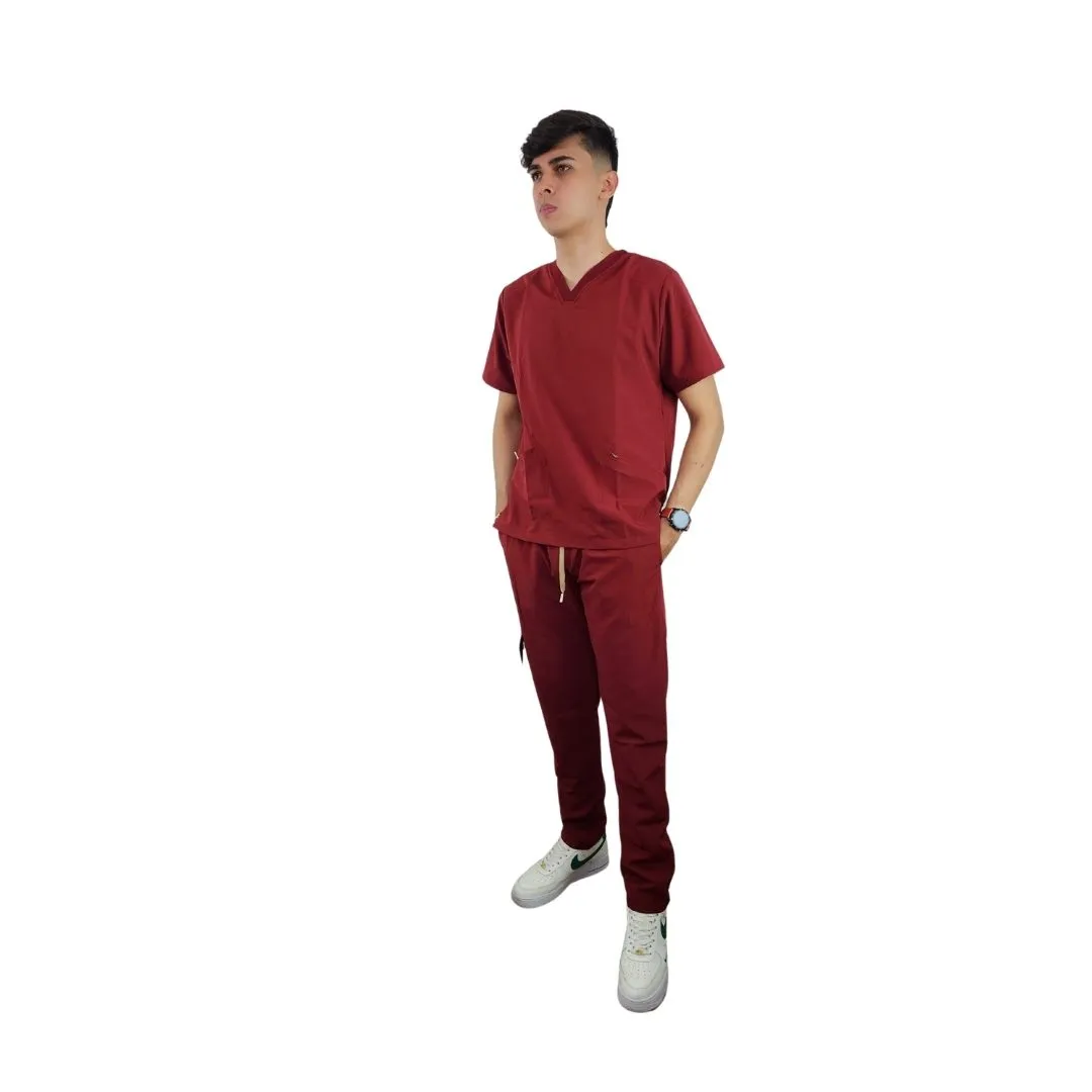Uniforme cuello en v tipo deportivo con Rif de poliéster en cuello,dos bolsillo en la parte de inferior de la blusa. Pretina de pantalón de 3 cm cordón en poliéster y puntera en zama con bolsillos camuflado con tapa a un costado.