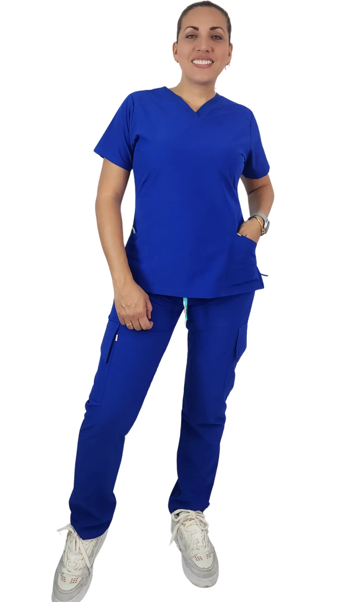 Uniforme cuello en v tipo deportivo con Rif de poliéster en cuello, dos bolsillos . Pretina de pantalón de 5 cm cordón en poliéster y puntera en zama con bolsillos camuflado con tapa bota recta