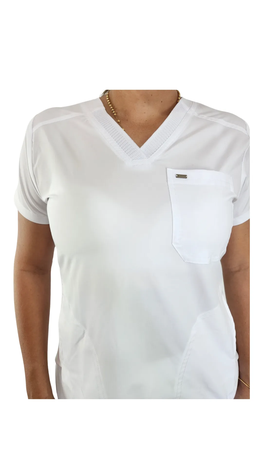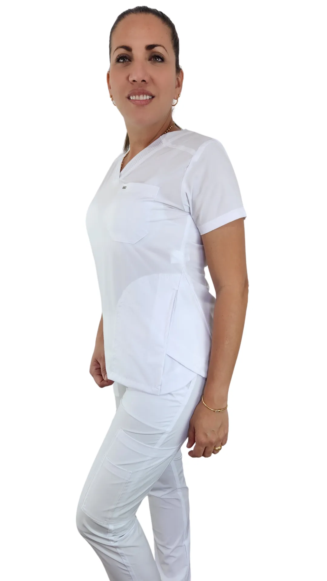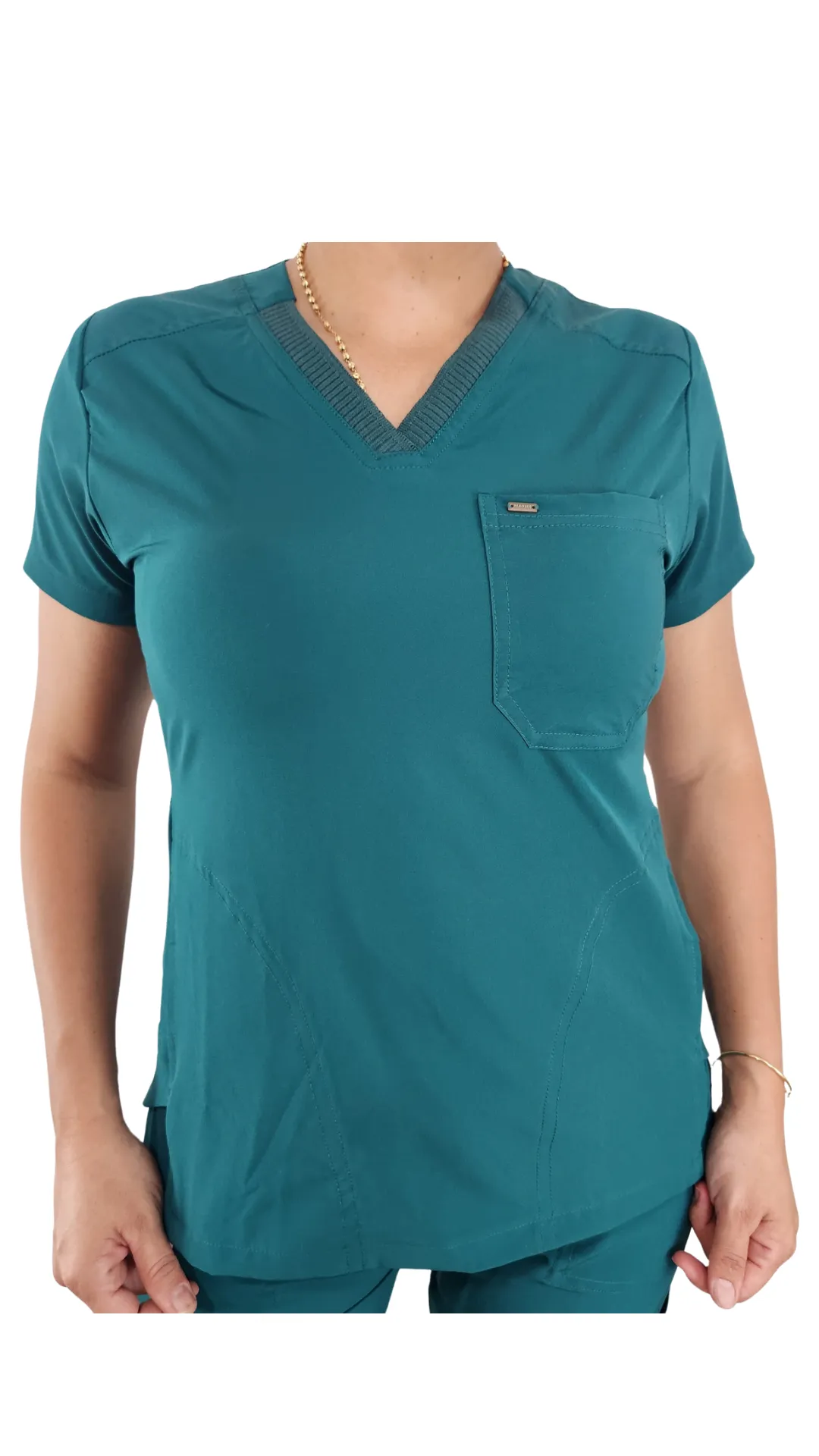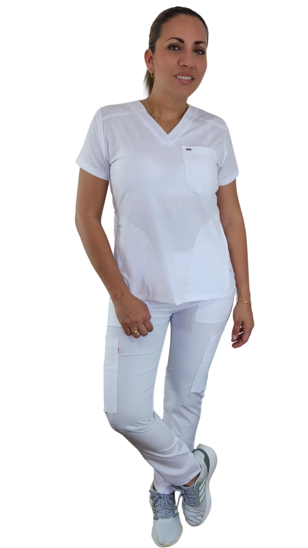 Tecnología que repele el agua y evita el paso de salpicaduras accidentales, la cual permanece a través de los lavados, actuando como un escudo protector de la piel, Tecnología que evita el paso de los rayos UV, actuando como un escudo protector de la piel, Tecnología que permite la elongación y recuperación del textil para brindar mayor libertad de movimiento