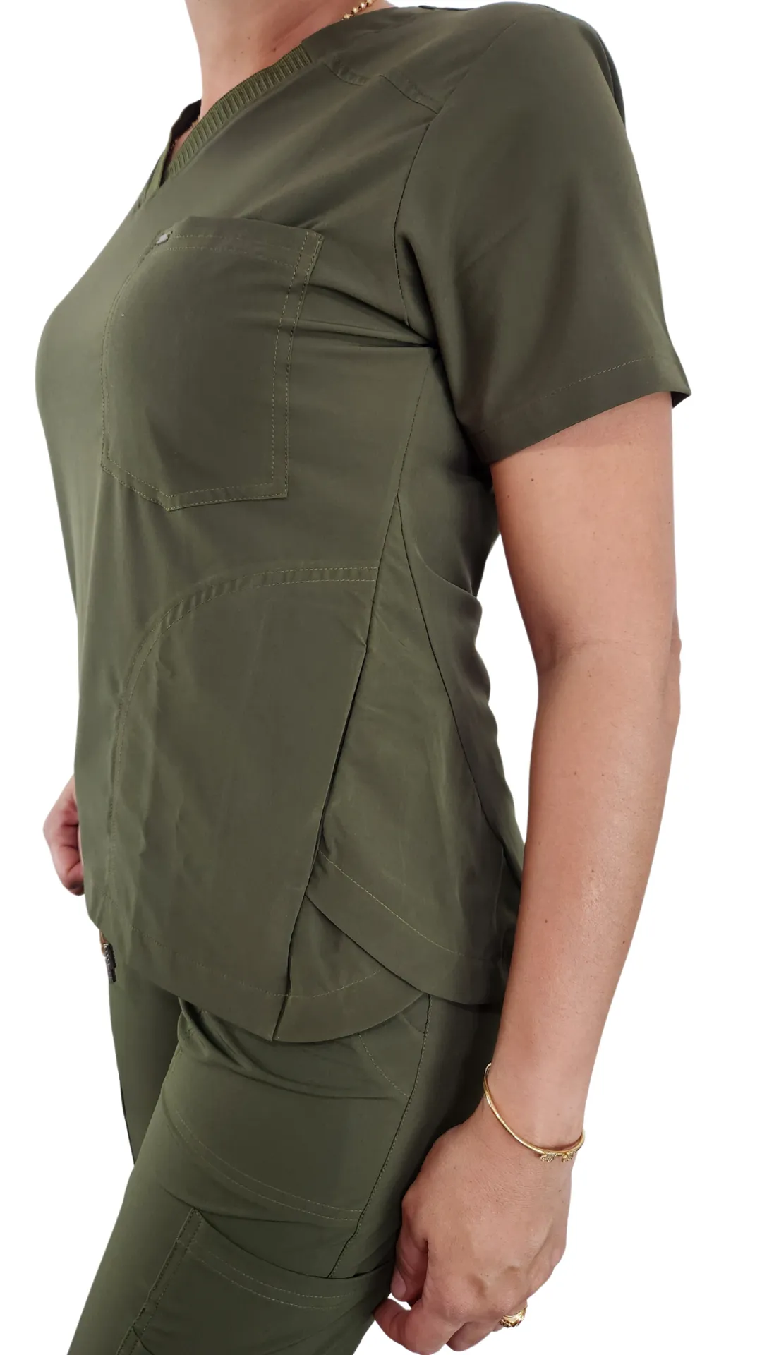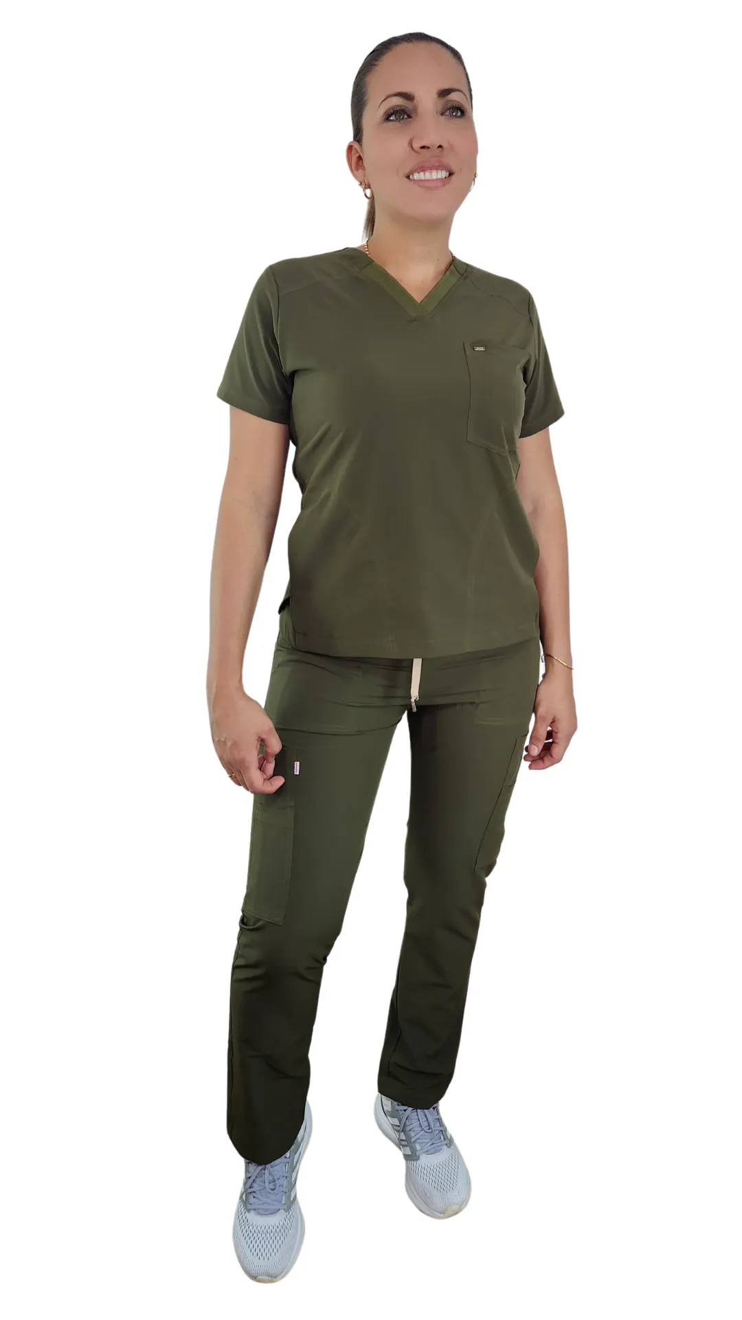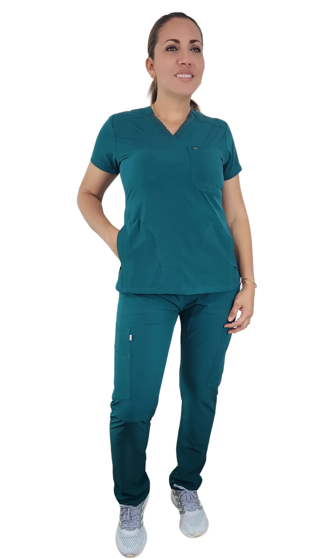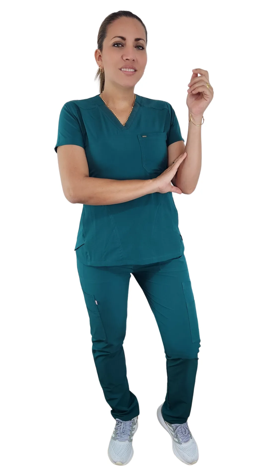 Tecnología que repele el agua y evita el paso de salpicaduras accidentales, la cual permanece a través de los lavados, actuando como un escudo protector de la piel, Tecnología que evita el paso de los rayos UV, actuando como un escudo protector de la piel, Tecnología que permite la elongación y recuperación del textil para brindar mayor libertad de movimiento