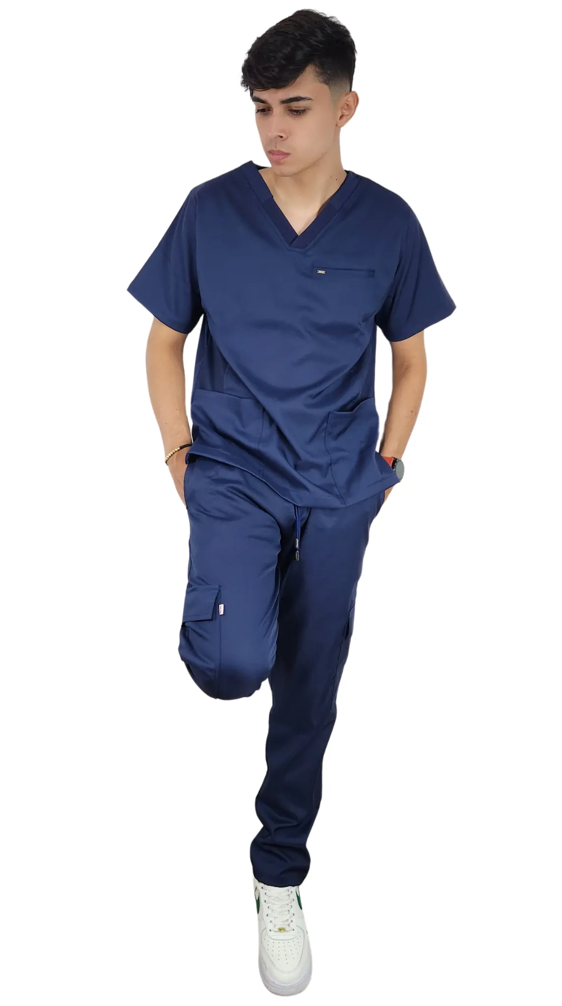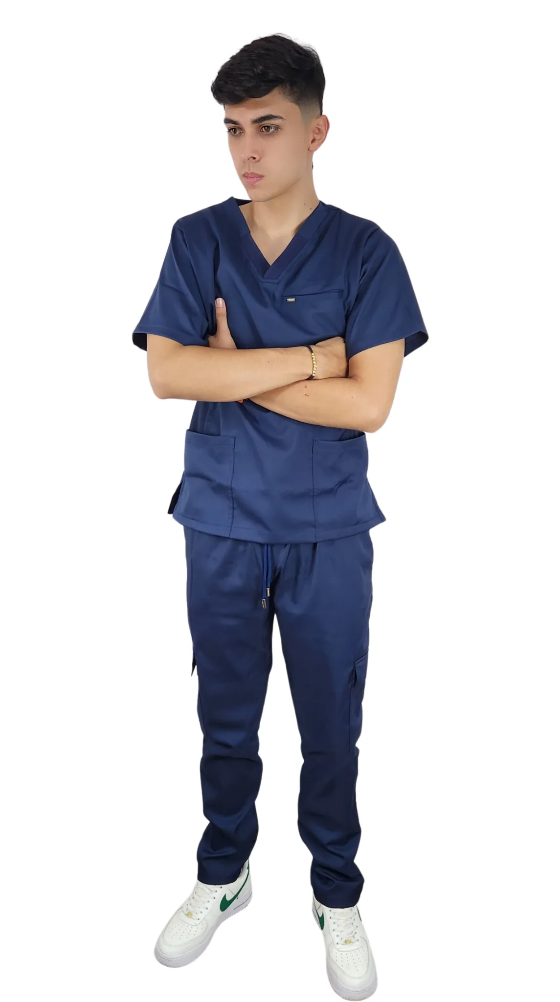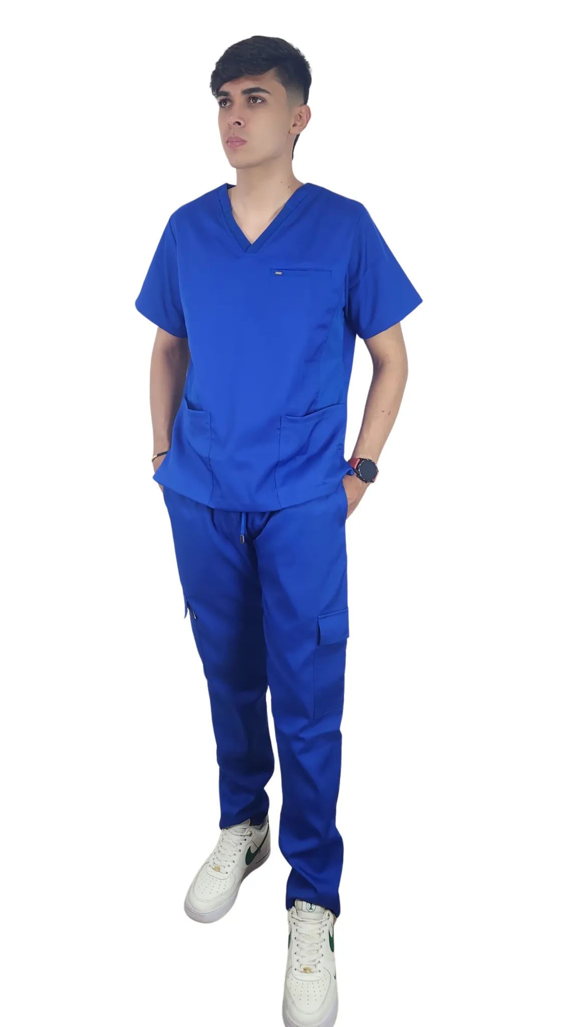 Uniforme cuello en v con Rif en cuello dos Bolsillos en la parte de adelante, Pretina de pantalón de 5 cm cordón en poliéster y puntera y placa en zama contramarcada con bolsillos camuflados a un costado.