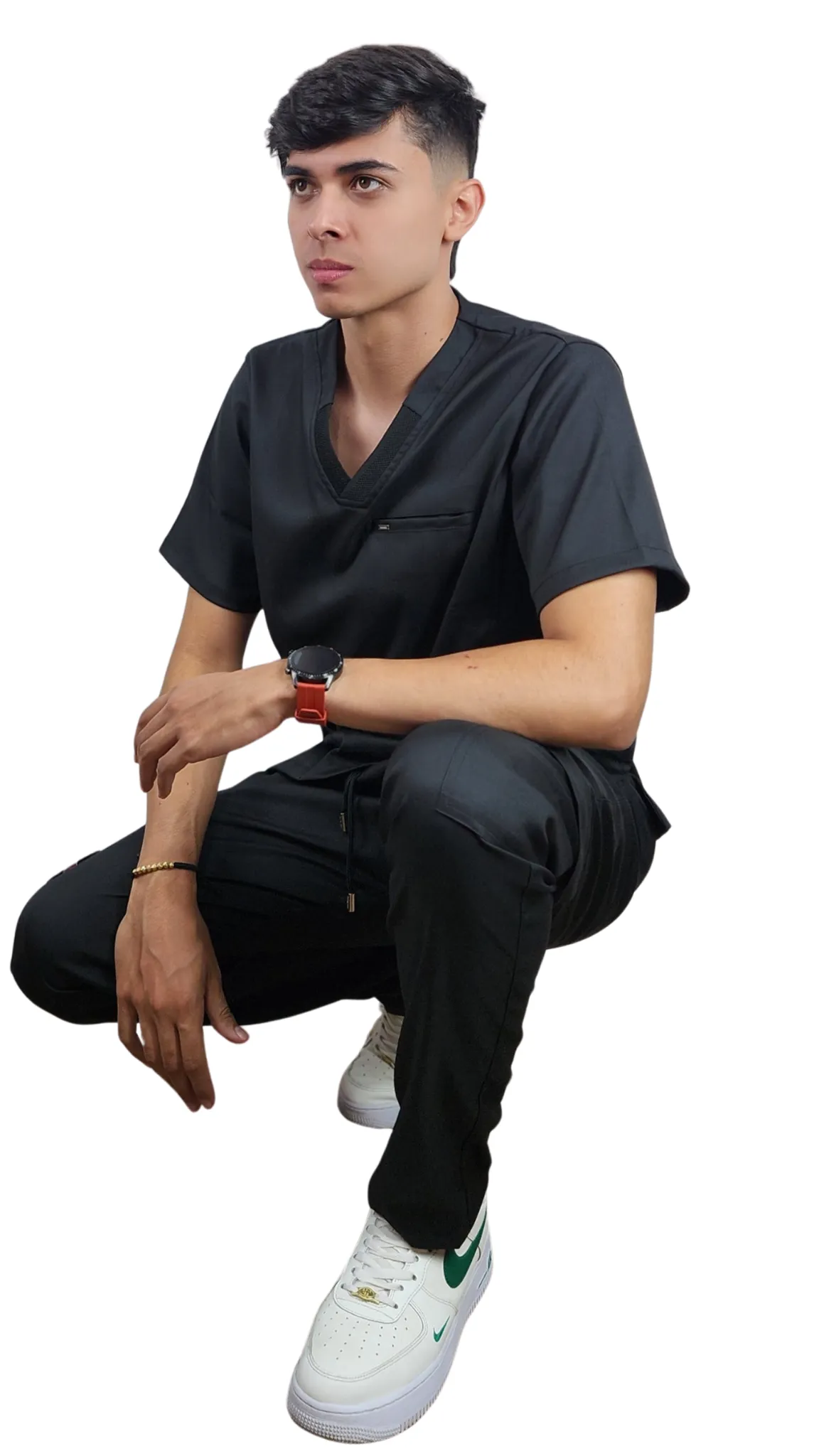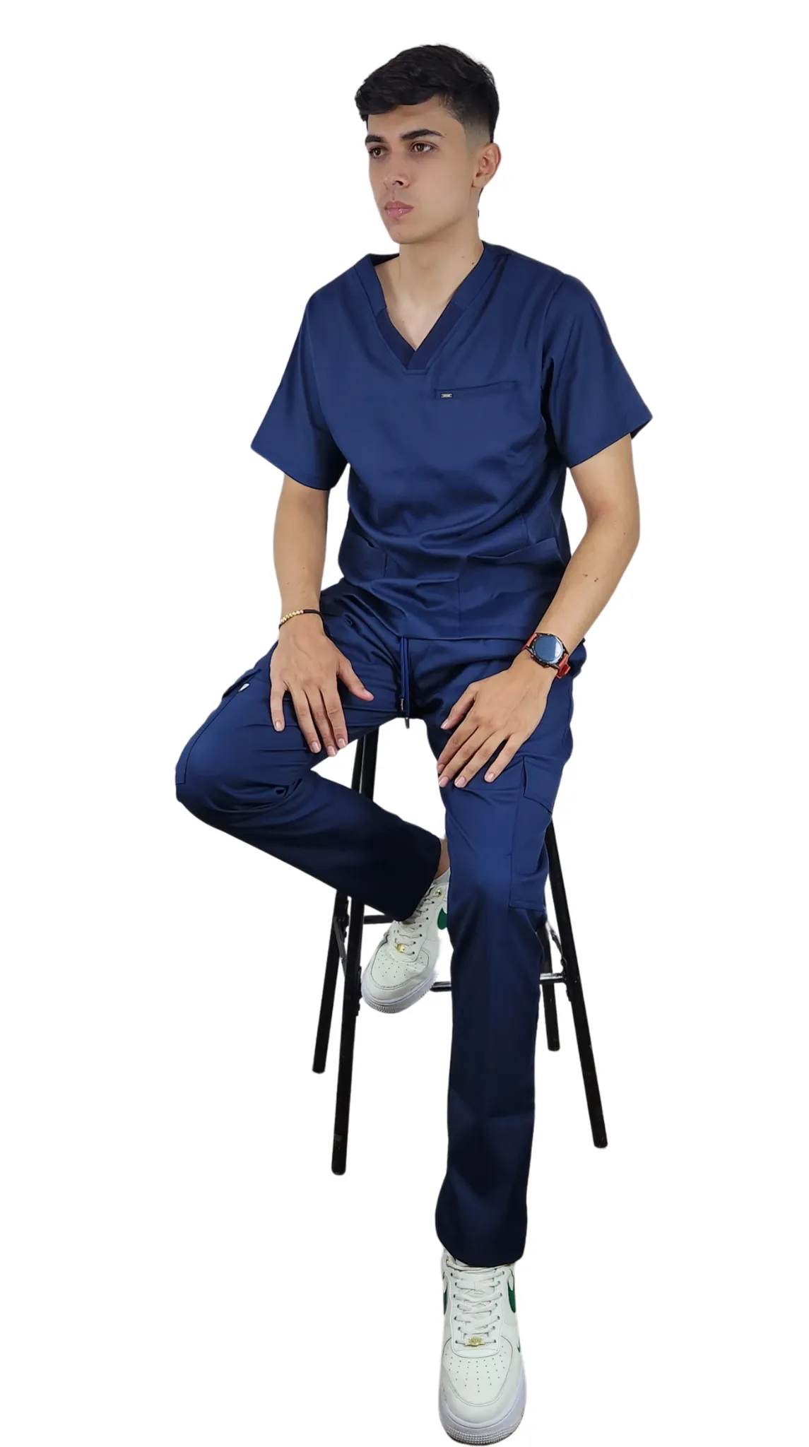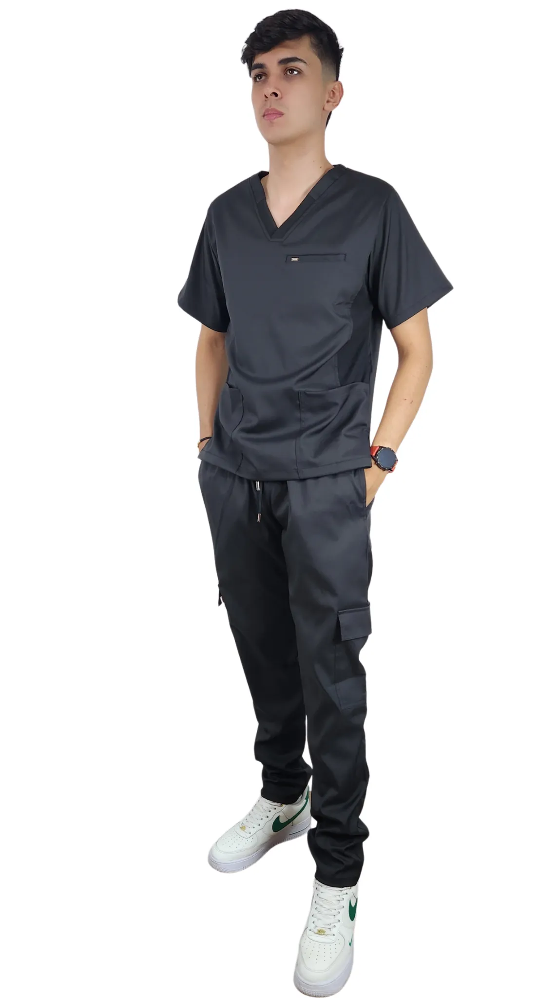 Uniforme cuello en v con Rif en cuello dos Bolsillos en la parte de adelante, Pretina de pantalón de 5 cm cordón en poliéster y puntera y placa en zama contramarcada con bolsillos camuflados a un costado.